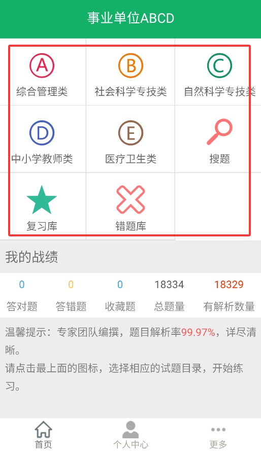 2、精准题型分类:涵盖A-E类五大考试门类,按章节难度细分练习模块。