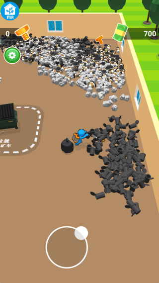 1、点击屏幕滑动,控制角色在庄园内移动,收集垃圾。