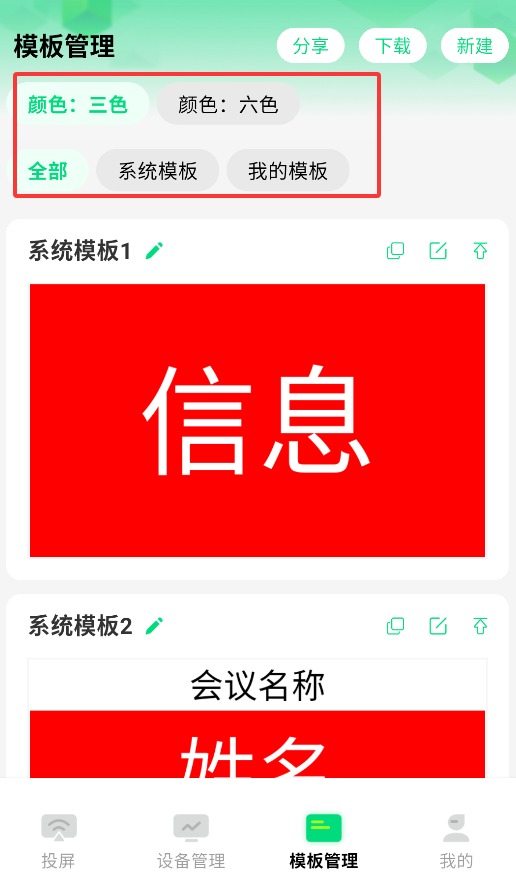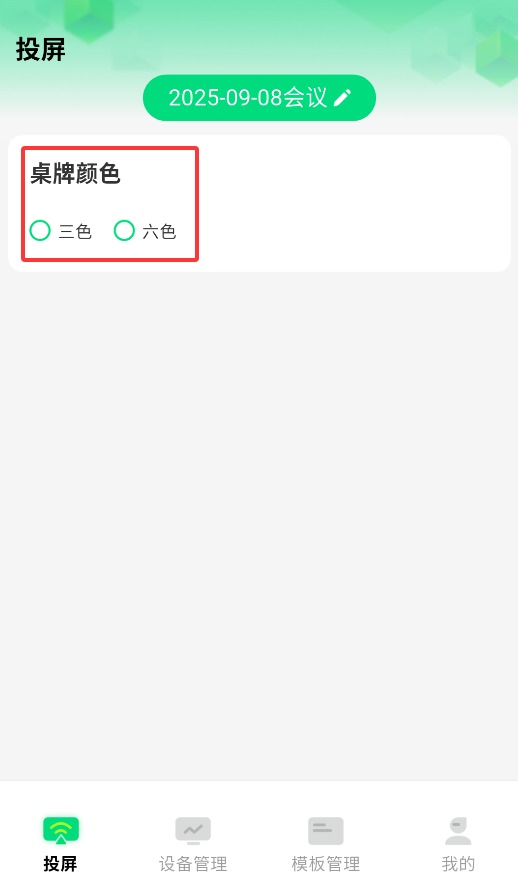 3、通过投屏设置功能,可自定义桌牌颜色,支持三色或六色模式切换。