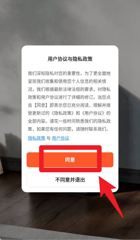1、进入时,需要先阅读用户协议与隐私政策,点击同意按钮后才能继续操作,确保账户与隐私安全。