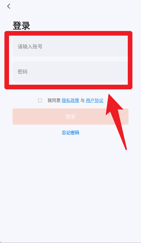 2、登录界面输入账号和密码,勾选同意隐私政策与用户协议后,点击登录即可进入系统。