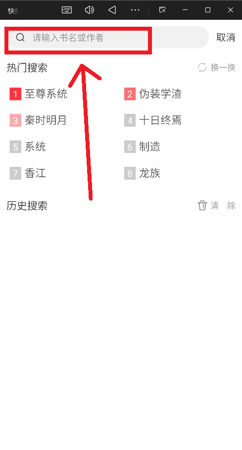 2、点击搜索框,输入你想找的小说名称、作者名或关键词(例如“龙王医婿”、“系统”等)。