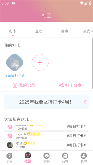 3、社区互动激励:可交流心得、组团 PK,助力坚持完成训练计划。