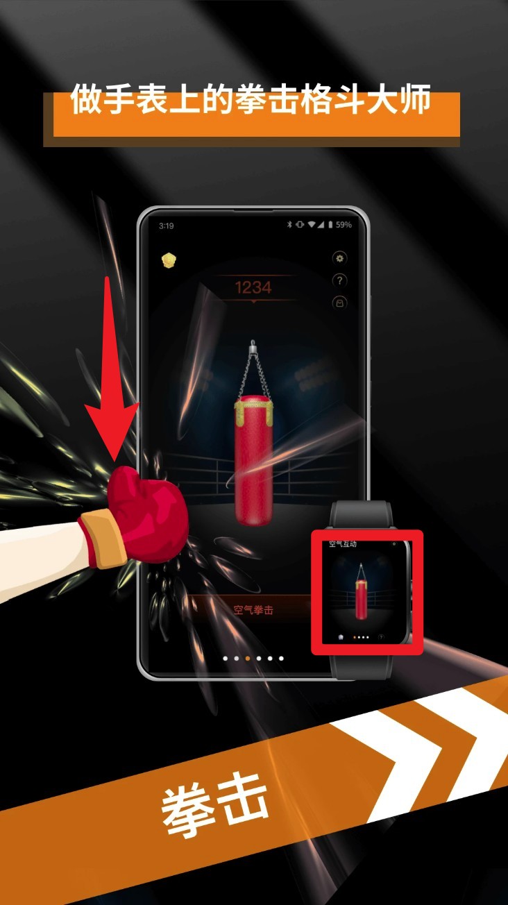 3. 切换至拳击模式后,用户可通过挥拳动作与punching bag进行互动,完成挑战任务并获取分数。