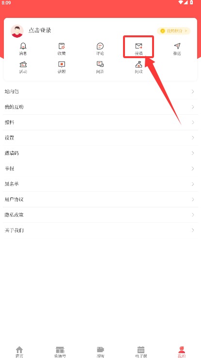 3、进入个人中心页面后,选择投稿功能按钮开始进行新闻稿件的编辑与提交操作。