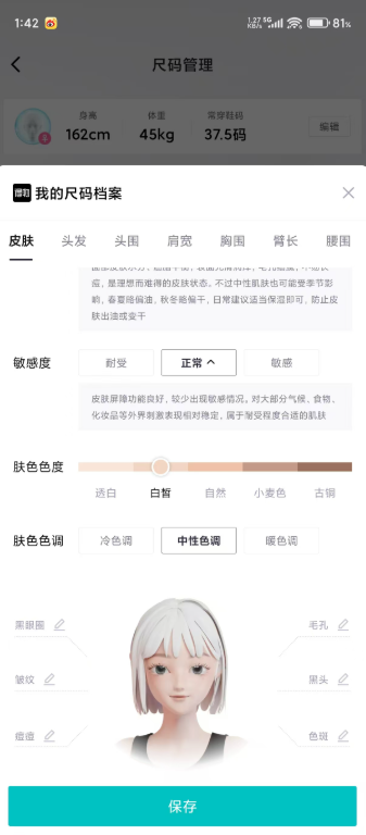 5.自由调整你的皮肤状态,腰围,头发,肩宽,胸围等,