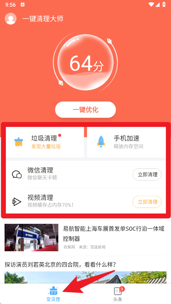 6、除了清理功能外,应用还提供头条模块,用户可在完成优化后浏览最新新闻和信息。