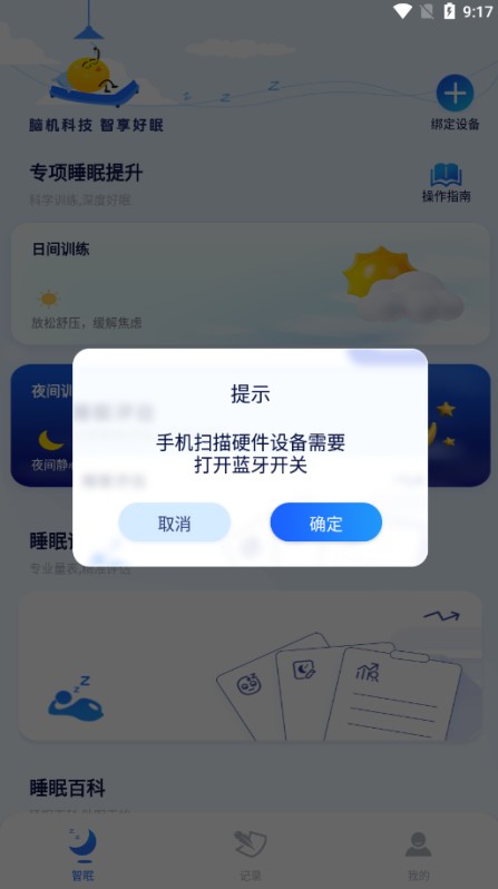 4、想要进入睡眠时,需记得打开设备蓝牙,确保软件与设备正常连接。