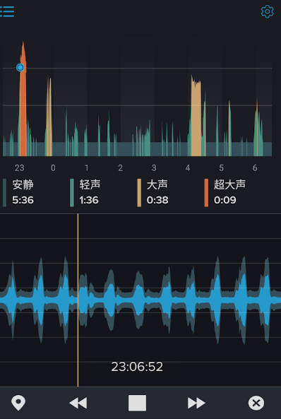 2、清晰记录:点击图表即可收听对应鼾声,也能选择记录整夜睡眠,听到每次呼吸声音。