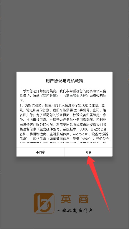 1、初次使用需阅读用户协议与隐私政策,确认无误后点击同意按钮进入登录界面。