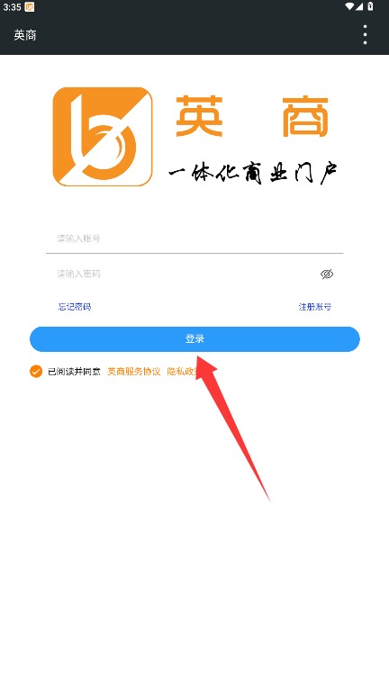4、返回登录界面输入已注册的账号和密码,勾选同意相关协议后点击登录即可。