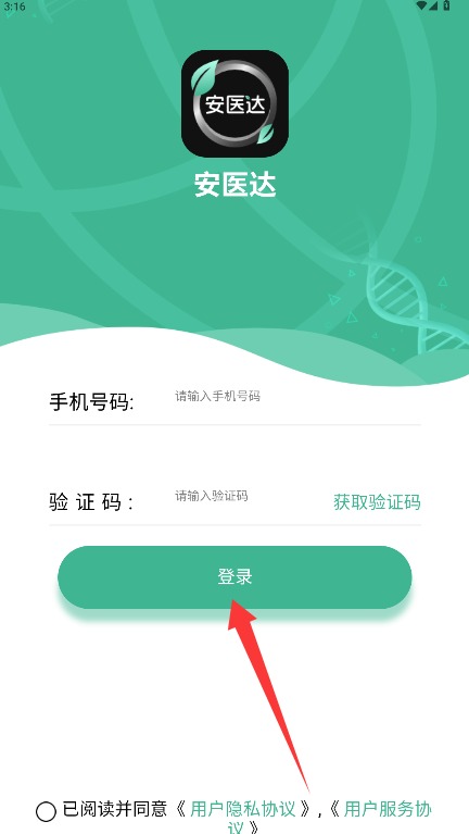 2、在登录页面输入手机号码和短信验证码,勾选同意相关条款后点击登录按钮进入。