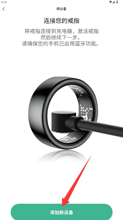4、根据提示将设备通电激活并开启蓝牙,点击添加新设备进行搜索设备连接配置。
