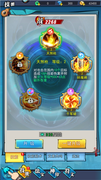7、点击技能,可以将技能进行升级,提升技能伤害。