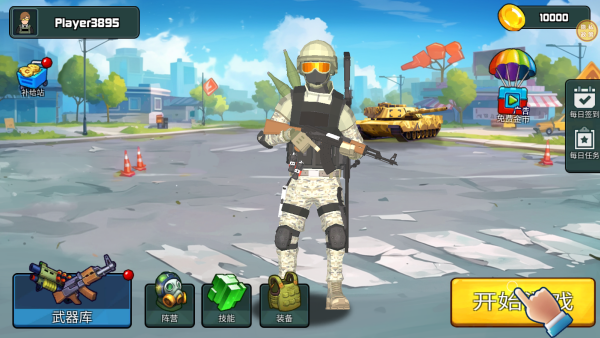 1、开始游戏,设置最佳签到,第一天领取金币,后面领取枪支。
