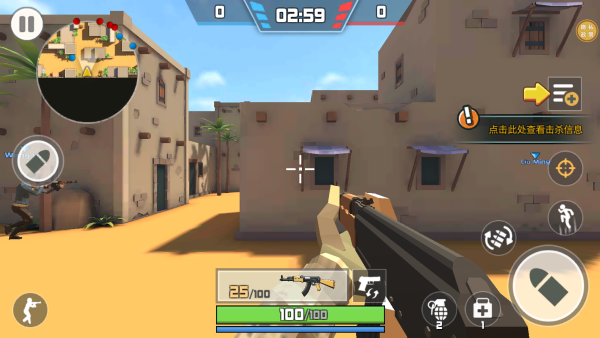 4、观察小地图,看到眼前敌人,快速完成射击取胜。