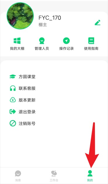 5、点击底部我的可查看大棚信息、联系客服、操作记录及账号设置等。