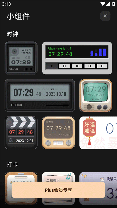 2、进入悬浮时钟页面后,选择一款喜爱的时钟组件,点击该组件就能在屏幕上显示时钟。