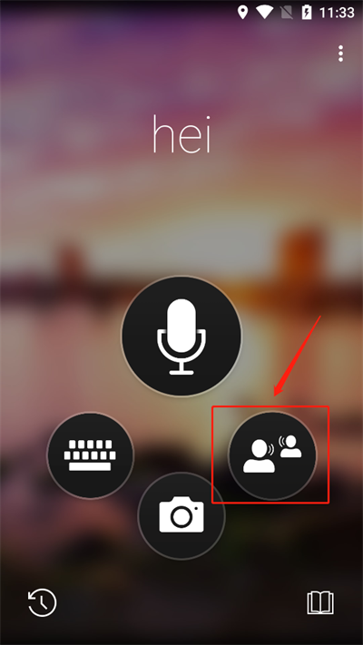 1、打开微软翻译 app,点击界面右侧的两个话筒图标,即可进入实时交流模式;