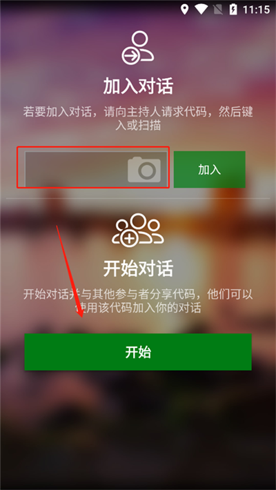 2、进入模式后开始对话,将生成的代码分享给其他参与者,他们通过代码加入,此时你点击 “开始” 即可;