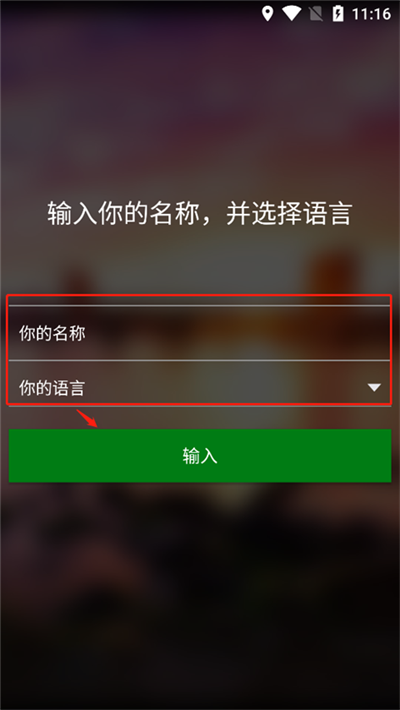 3、在指定页面输入你的名称,并选择自己使用的语言,完成个人信息设置;