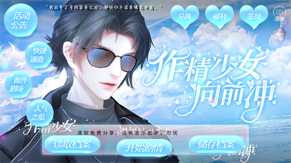 1、打开游戏,我们能够看到一个非常精美清爽的游戏界面,我们在这里点击开始剧情。