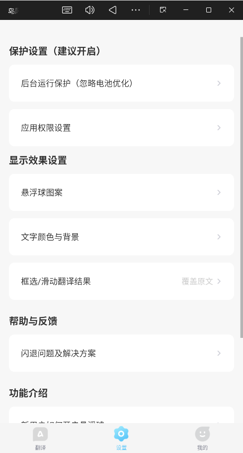 保护设置:强烈建议开启“后台运行保护”,防止系统自动清理后台导致悬浮球失效。