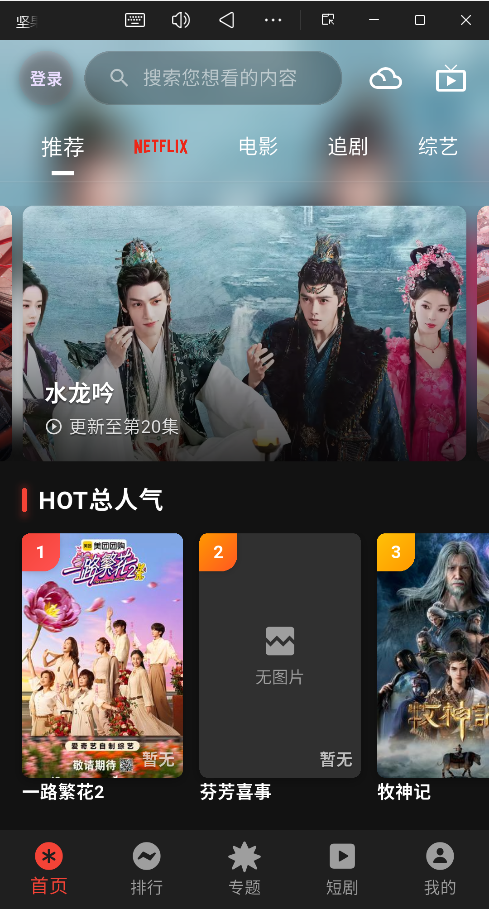浏览推荐:在“推荐”区域下滑,浏览系统为你推荐的电影、追剧、综艺等。