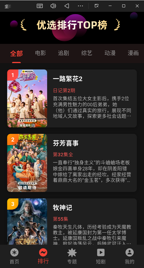 发现热门内容:通过排行榜快速找到口碑好、人气高的作品,避免剧荒。