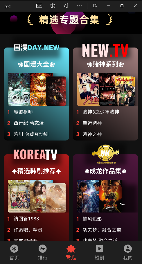 功能:由编辑精心整理的影视合集,围绕特定主题、类型或演员。