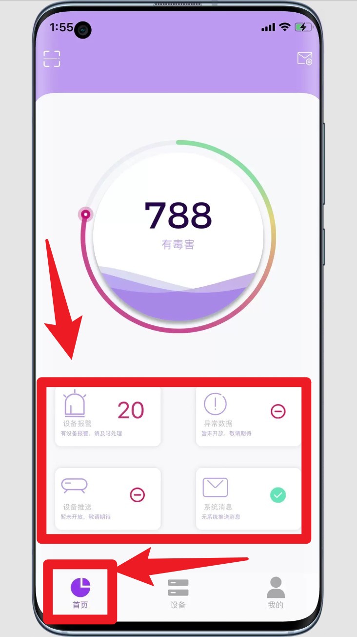 1. 进入首页页面,可查看设备报警、异常数据等信息,点击相应模块可了解详情或处理任务。