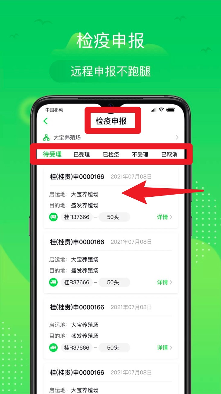 桂牧通app是一款为养殖从业者提供专业管理服务的软件,具备着检疫申报线上提交、养殖数据电子化记录、档案数字化管理等核心功能。使用者通过移动终端就能完成产地检疫远程申请,避免了往返的奔波;可以全面登记畜禽存栏量、批次变动信息,自动生成标准化统计报表,实现养殖全流程数据的集中监控、统一管理。