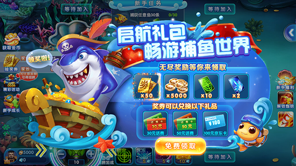 2、免费福利:登录即送、捕鱼掉落、完成任务领福利、破产还能获补给,钻石金币拿到手软;