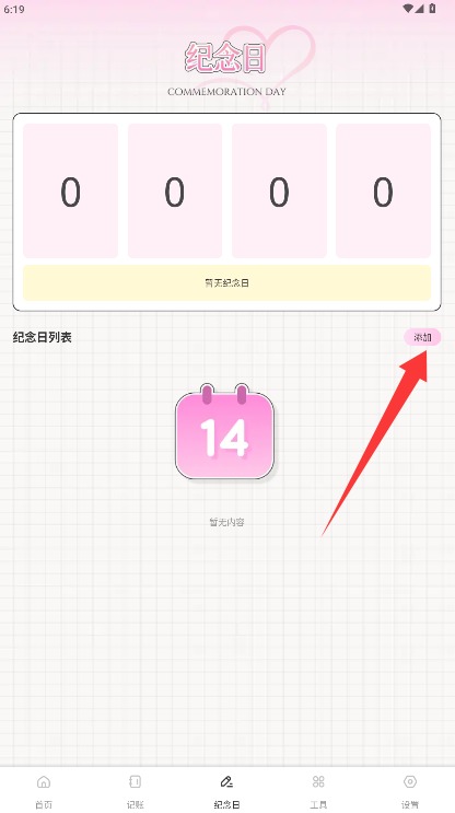 3、切换到纪念日功能界面之后,点击添加功能按钮开始创建新的纪念日事项安排。