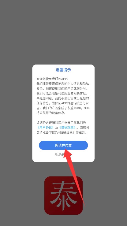 1、初次使用需阅读用户协议与隐私政策,确认无误后点击阅读并同意按钮进入。