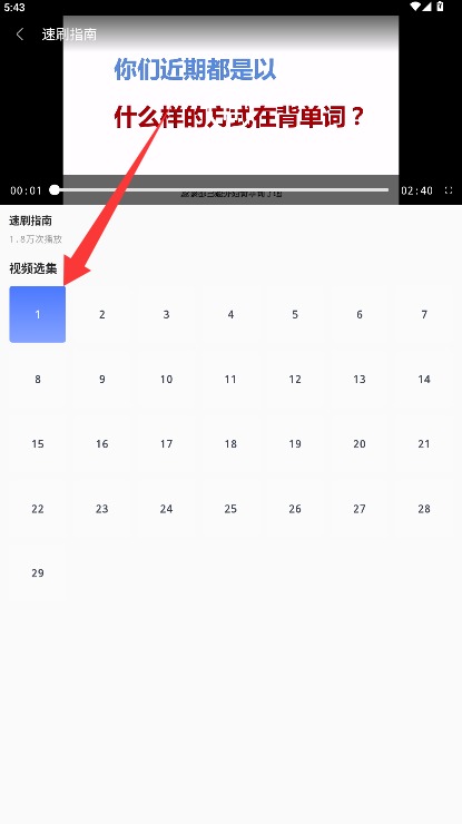 4、在视频播放主页面可通过选集功能自由切换不同章节的课程内容部分。