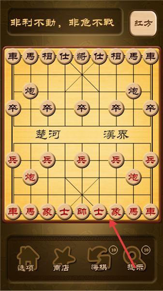 红方为“仕”,黑方为“士”,它也只能在九宫内走动。它的行棋路径只能是九宫内的斜线。士一次只能走一个斜格