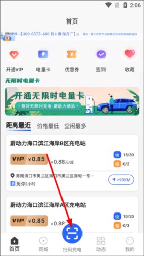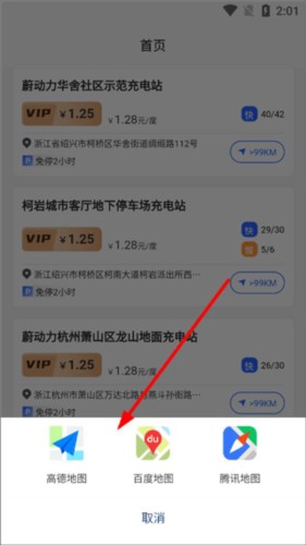 3、挑选偏好的导航方式开启地图导航,驱车抵达充电桩位置后,点击 app 内 “扫码充电” 功能。