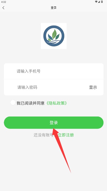 2、在登录页面输入手机号和登录密码,勾选同意隐私政策后点击登录进入应用。