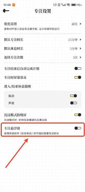 3.开启悬浮窗,这样就可以边计时边使用其他软件学习了。