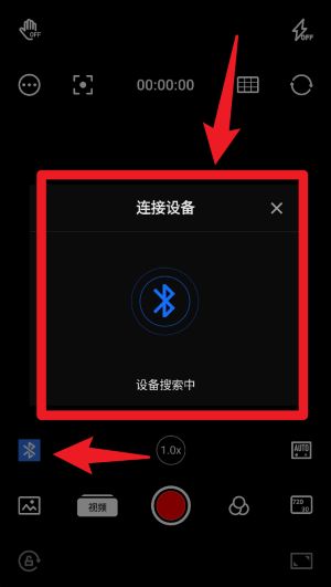 2、进入相机界面后,点击左侧蓝牙按钮即可搜索并连接稳定器设备,确保设备成功配对以获得最佳操控体验。