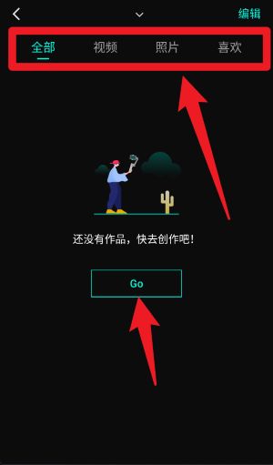 5、在作品管理页面,用户可通过全部、视频等分类快速查找和管理拍摄内容,点击Go即可开始新的创作。