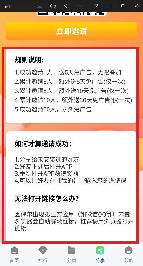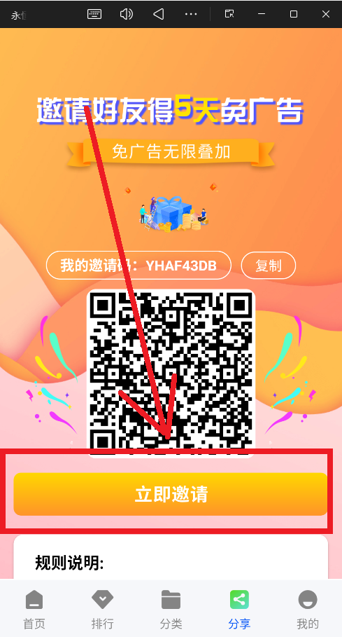 4、成功邀请后,你和好友都可以获得 5天免广告 奖励。邀请越多,免广告时间越长,甚至可以叠加至永久。