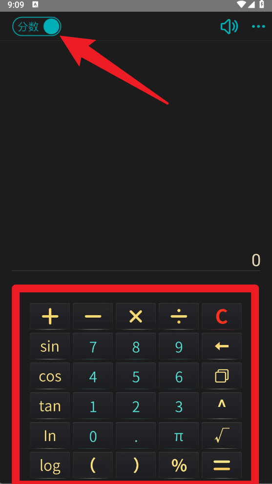 1、在主界面切换到分数模式,用户可以进行带分数的加减乘除和高级计算,界面下方的功能键区支持多样化运算。