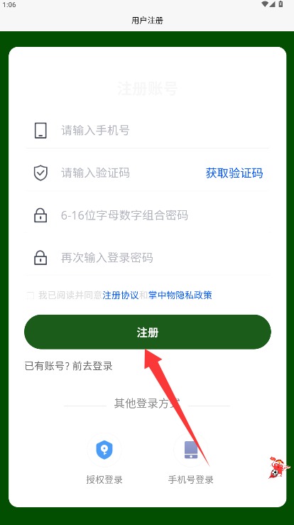 1、输入手机号和验证码,设置密码并同意相关协议后点击注册完成账号创建。