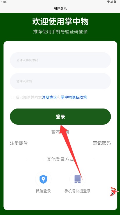 2、在登录页面输入手机号和登录密码,勾选同意相关条款后点击登录进入首页。