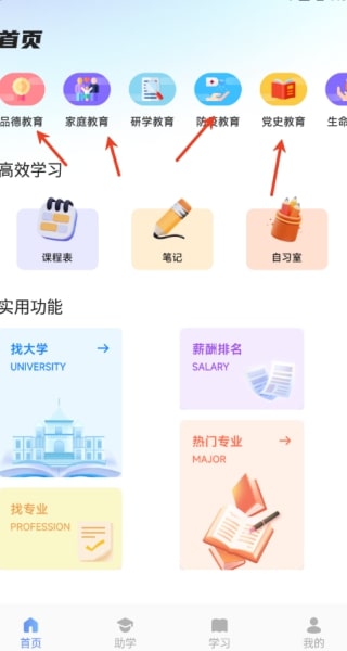 2、进入首页后,会看到多种不同教育形式的内容,可根据需求选择学习。