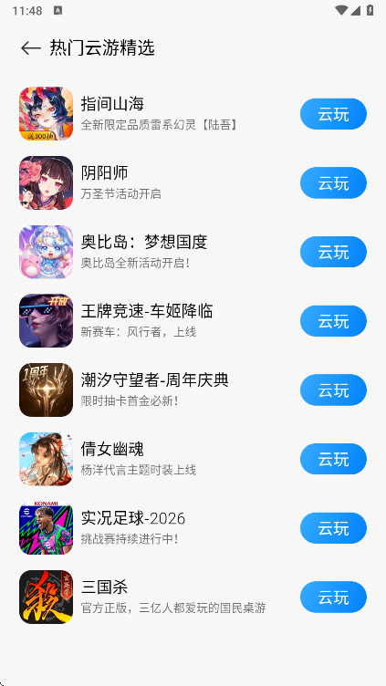 3、点击 “更多热门云游” 选项,在展示列表中挑选想要游玩的游戏。