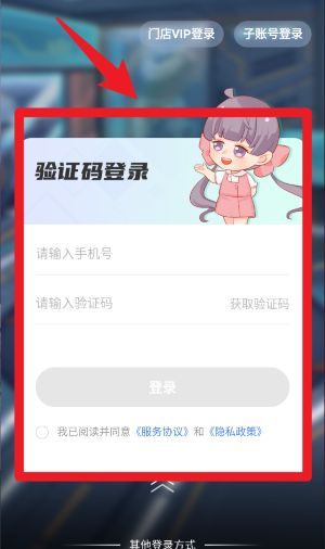 2、进入登录界面后请输入手机号码并获取验证码,勾选服务协议后点击登录即可完成快速身份验证。