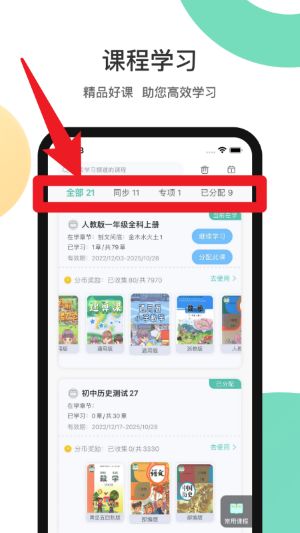 4、在课程学习界面中可查看所有同步课程及专题课程,支持已分配内容一键进入对应学习模块。